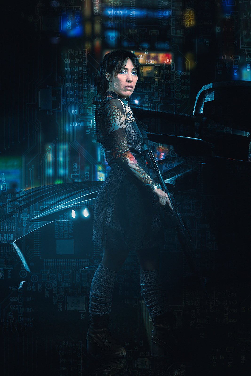 Pace will be easy going. We will shoot against a black backdrop with various pink, cyan, red, and yellow neon and spotlight setups. Some props and wardrobe is available but I recommend styling ahead of time for the classic, dystopian cyberpunk look.